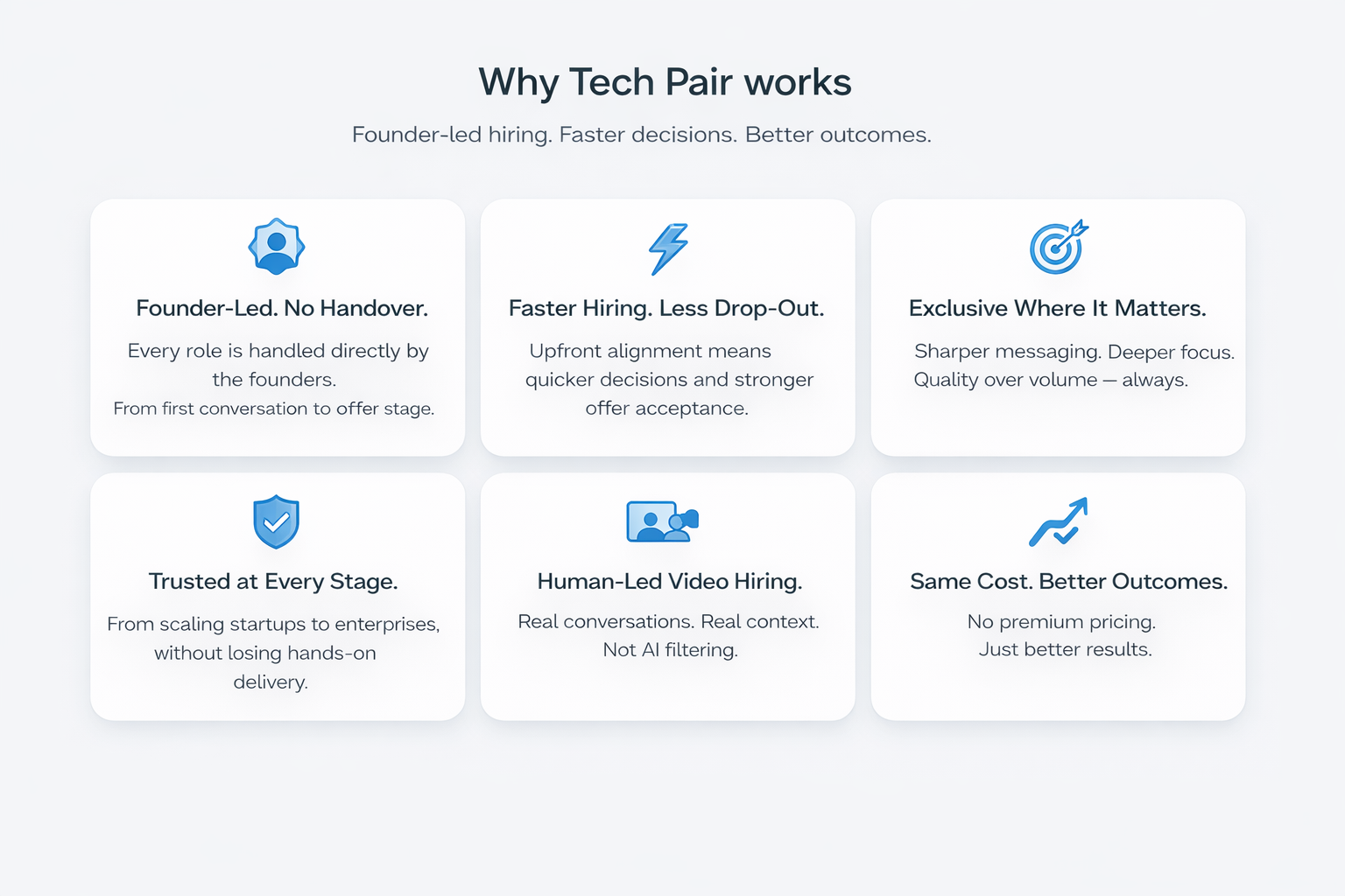 We use live, human-led video interviews not automated or one-way screening. Better context, stronger buy-in, fewer wasted interviews.